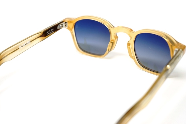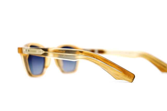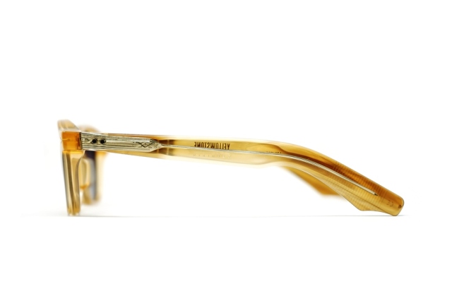 MATERIAL: 10MM BLOCK, POLISHED YELLOW CLEAR, CLEAR BEIGE & HAVANA ACETATE FRAME, CUSTOM DOUBLE LAMINATED ACETATE TEMPLES FT. PRECIOUS METAL HARDWARE
