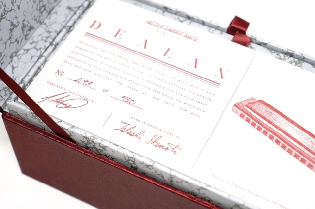 JMMのアイウェアコレクションは、最高峰の信頼と技術を誇る日本の工場にて、職人の手によって仕上げられます。随所に使用されるスーリングシルバーや18Kのジュエリーパーツが「大人の眼鏡」を演出します。
