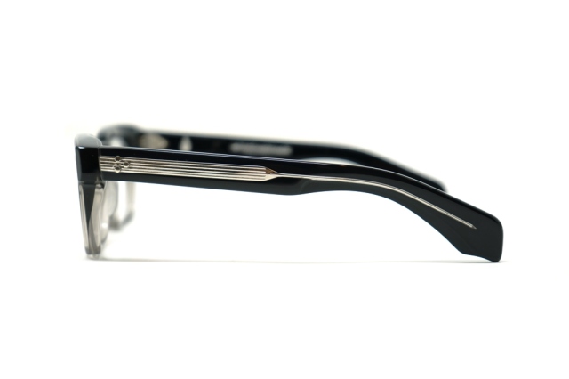 MATERIAL: 10MM BLOCK, BLACK FADE ACETATE FRAME, CUSTOM DOUBLE LAMINATED ACETATE TEMPLES FT. PRECIOUS METAL HARDWARE