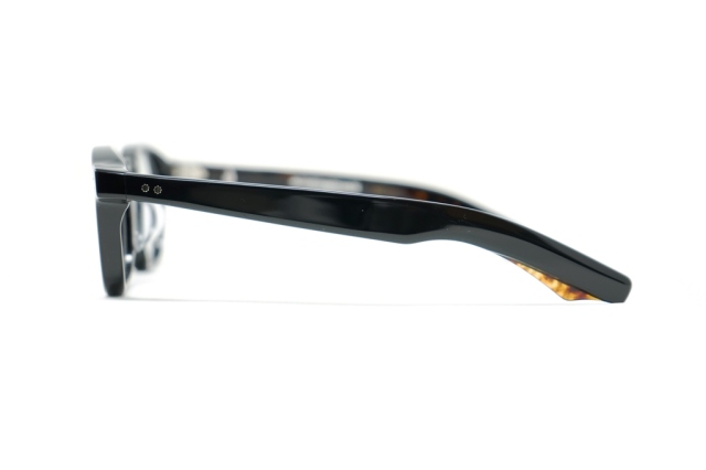 MATERIAL: 10MM BLOCK, BLACK POLISHED W/ TORTOISE ACETATE FRAME, CUSTOM DOUBLE LAMINATED ACETATE TEMPLES FT. SILVER HARDWARE