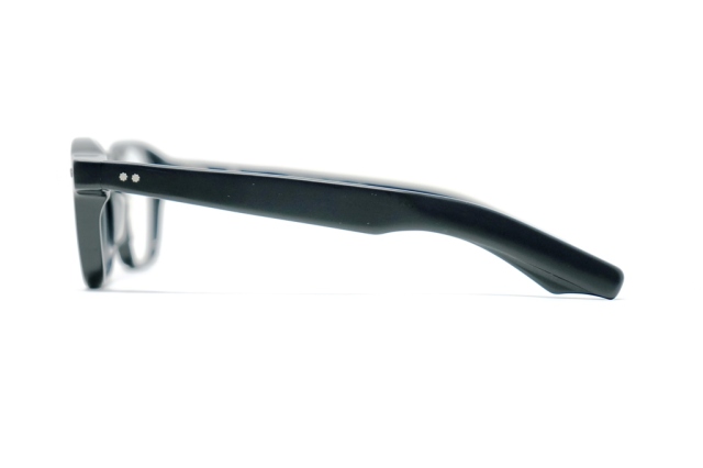 MATERIAL: 10MM BLOCK,BLACK MATTE ACETATE FRAME, CUSTOM DOUBLE LAMINATED ACETATE TEMPLES FT. PRECIOUS METAL HARDWARE