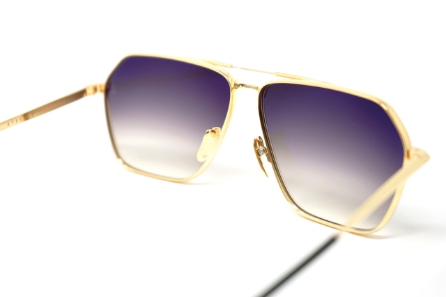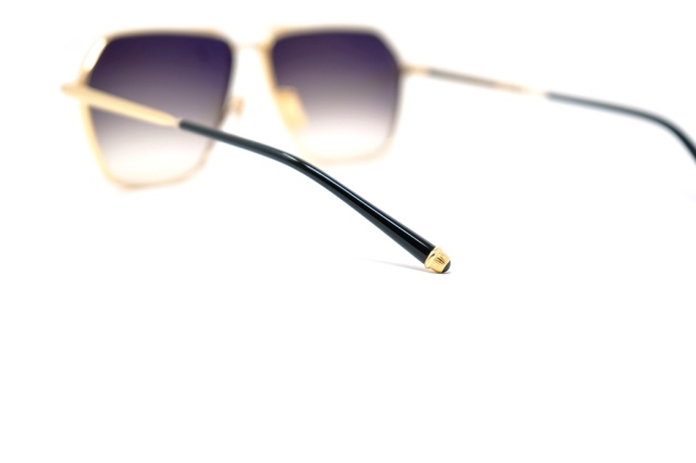MATERIAL:GOLD 100% BETA TITANIUM FRAME WITH COMBO TEMPLES AND BLACK GRADIENT LENSES