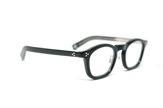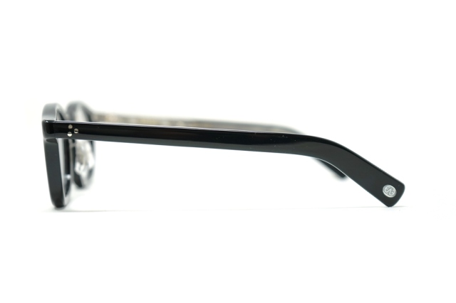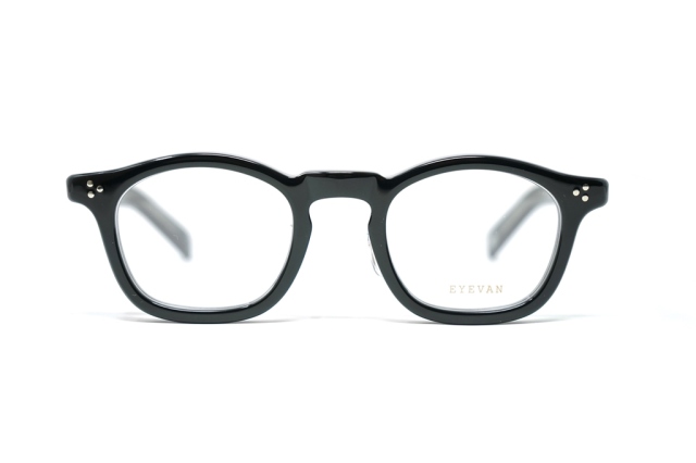 フレンチヴィンテージから着想を得た、エッヂのある肉厚なフロントと極太なワイドテンプルをEYEVAN流にデザインしたモデル。フロント、テンプル丁番には、工場に眠っていたヴィンテージのサンプルに使われていた三角形の台座の丁番をEYEVANオリジナルで再現。カシメPINには90年代に使われていた抜けを防止する補強パーツを使用。シンプルながら細部にもこだわった。