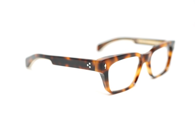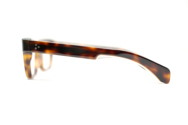 MATERIAL: HAVANA W/ CLEAR ACETATE FRAME, CUSTOM DOUBLE LAMINATED ACETATE TEMPLES FT. PRECIOUS METAL HARDWARE
