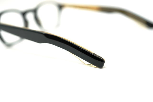 MATERIAL: 10MM BLOCK, BLACK POLISHED W/ TORTOISE ACETATE FRAME, CUSTOM DOUBLE LAMINATED ACETATE TEMPLES FT. DARK GOLD HARDWARE