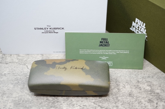 Born to thrill, these subtle and serious spectacles handcrafted in the finest beta titanium are an elevated interpretation of the iconic glasses worn by Private James T. "Joker" Davis (played by Matthew Modine) in the Stanley Kubrick film, Full Metal Jacket (1987).