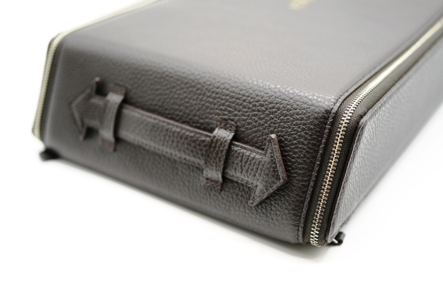 当ケースの表側にはイタリアから輸入した上質な革を使用しています。ヨーロッパの革は原皮の質や色の出し方がとても上質で、その点をとても感じていただけます。