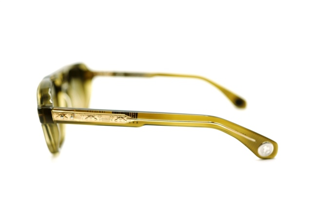 レンズにはCR39またはミネラルガラスレンズ。 スターリングシルバーと18Kゴールドで精巧に加工された金属のディテール( カスタムリベットと刻まれたワイヤーコアデザイン、オリジナルの隠しヒンジシステム、 ドーム型のブランドロゴ)