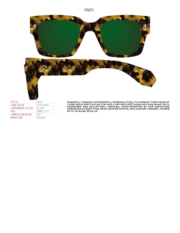 JMMは大陸、文化、世代を超えてインスピレーションを得て、確かな職人技と高度な生産方法を組み合わせ、上質な素材、大胆な幾何学デザインを取り入れて、クラシカルでありエレガントな要素を吹き込んだアイウェアを展開します。