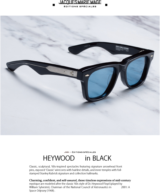 JMMは大陸、文化、世代を超えてインスピレーションを得て、確かな職人技と高度な生産方法を組み合わせ、上質な素材、大胆な幾何学デザインを取り入れて、クラシカルでありエレガントな要素を吹き込んだアイウェアを展開します。