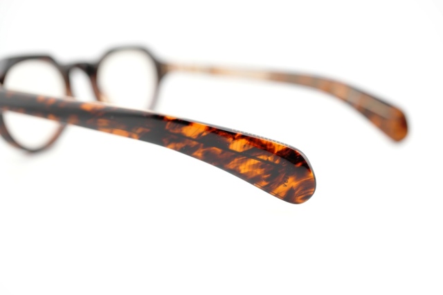 サーカコレクションの特徴は、表裏でラミネートされた10mmのアセテートブロックを削り出し、形成した彫刻美、ボリューム感のあるボディを磨き上げた光沢感であり、それは日本の工場にて職人が監督する複雑な生産プロセスを通じて作成されています。