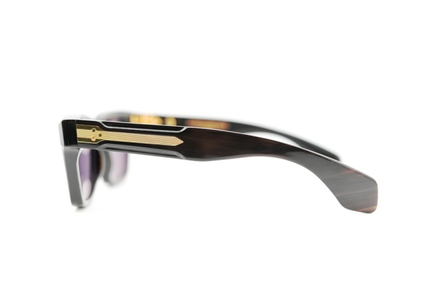 MATERIAL: BLACK 10MM BUFFALO HORN FRAME AND TEMPLES FEATURING PRECIOUS METAL HARDWARE AND BLACK LENSES