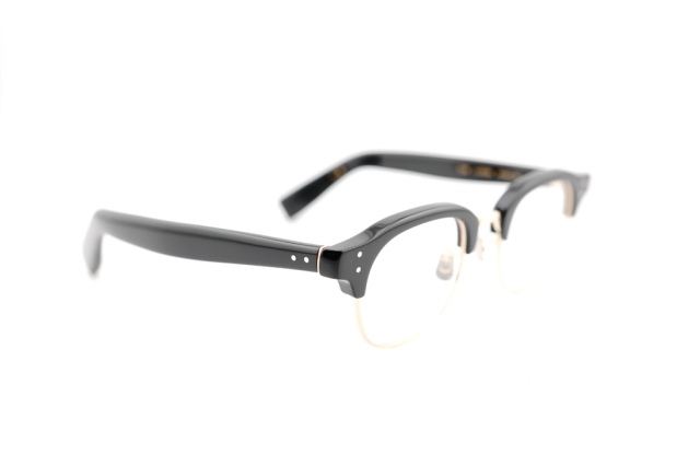 [645]の系譜に連なるモデルとなる[649]はボリューム感はそのままに、玉型を2023SSモデル[343]のスクエアシェイプにしたタイプ。ブランドのシグネチャーパーツであるミリタリー丁番は、間隔の離れた2PINの新規パーツを用い、フロントとテンプルは合口メタルのオフセット設計という特徴的な構造。