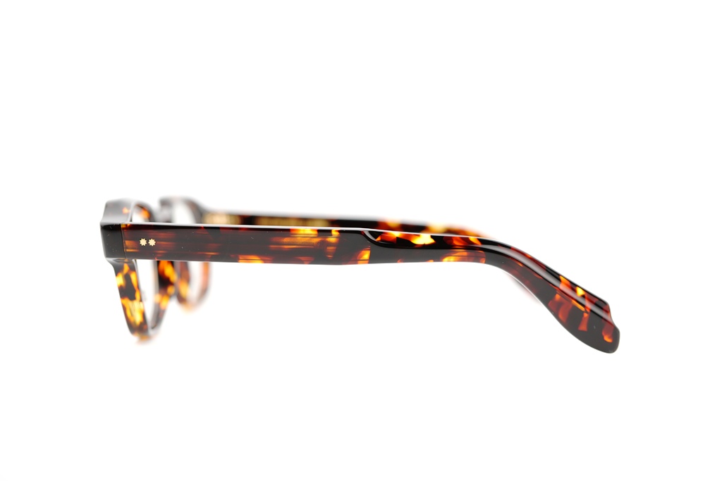 1420は、フロントに施された独自のステップディテールによって、フレームを構成するラミネート素材の繊細な層が美しく際立つようデザインされています。カトラー アンド グロスのシグネチャーでもあるピンが、フロントとテンプルを上品に彩ります。すべてのフレームは、アトリエにて270時間以上かけて丁寧にハンドメイドで仕上げられています。