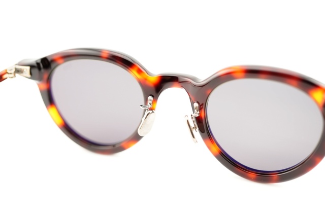 新たにオリジナルで作製した日本製の偏光フラットガラスレンズを採用したモデル。この特別なレンズに合わせて開発したヨロイパーツは横から座掘りを入れて取り付けたパーツを後ろからネジ止めするという特殊な構造。ヨロイの柄が持つクラシックな印象に、少しモダンなイメージでデザインした玉型を組み合わせ、古さと新しさが同居する独創的な雰囲気に仕上げた。上部のラインがシャープな印象のボストン型の740と、智が落ちた柔らかいラインのウェリントン型の741の2型で展開。