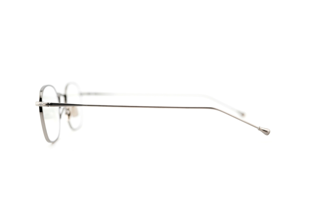 フロントからテンプルへと流れる滑らかな造形、軽量でしなやかなニッケルフリー・ベータチタン構造、そしてミニマルなディテールに宿るクラフツマンシップ。
