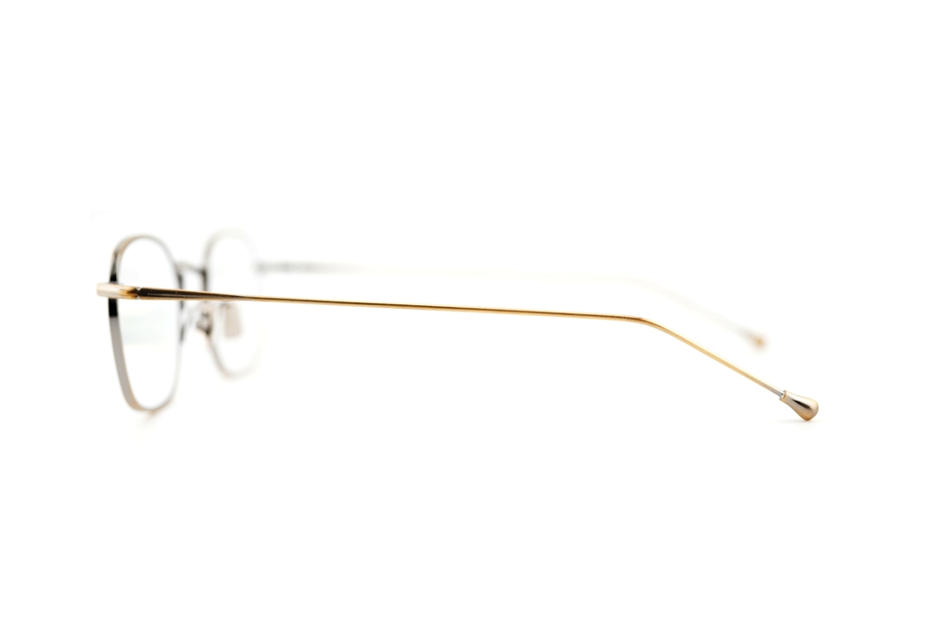 フロントからテンプルへと流れる滑らかな造形、軽量でしなやかなニッケルフリー・ベータチタン構造、そしてミニマルなディテールに宿るクラフツマンシップ。