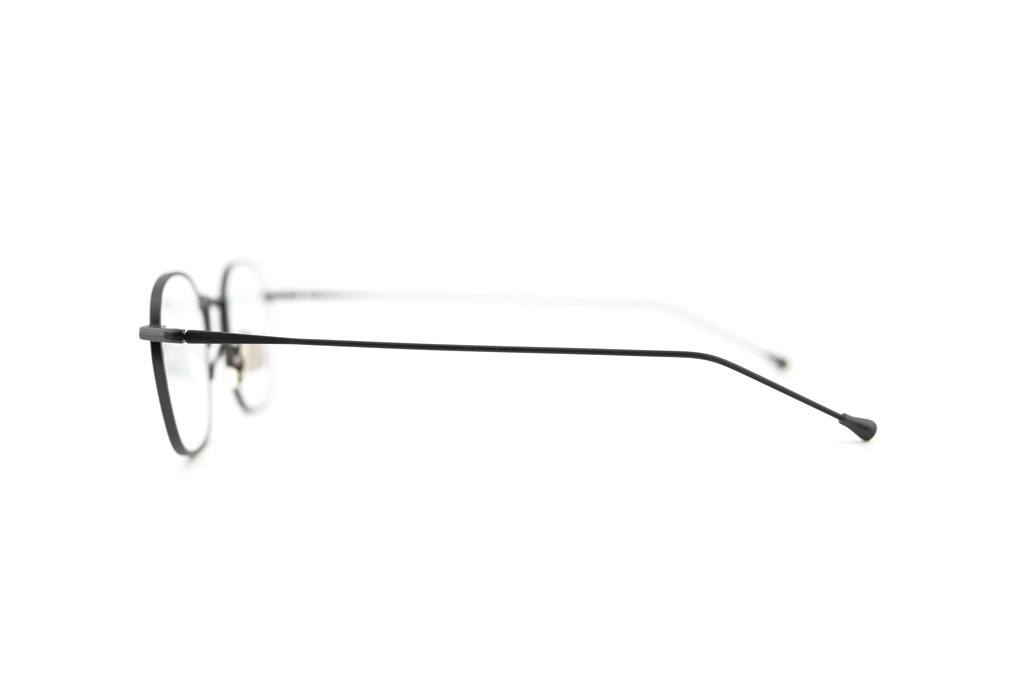 フロントからテンプルへと流れる滑らかな造形、軽量でしなやかなニッケルフリー・ベータチタン構造、そしてミニマルなディテールに宿るクラフツマンシップ。