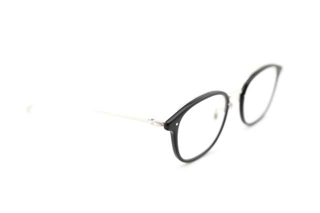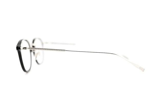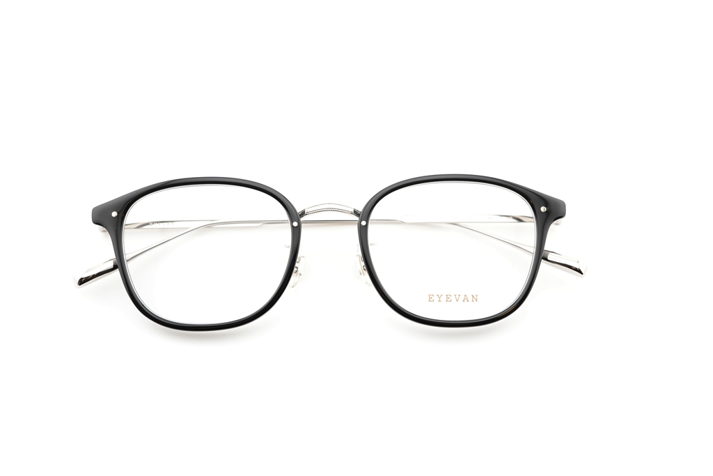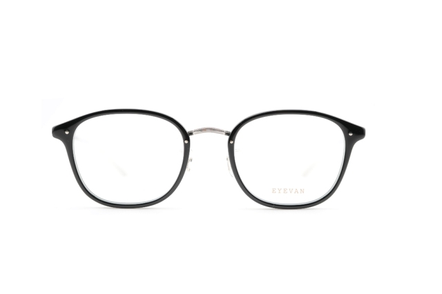 2023SSシーズンモデル『Danforth』のサイズアップバージョン。ウェリントン型のプラスチックリムに、熟練の職人技によってロウ付けを行わずに成形された、ミル模様入りの一体型トップバーを組み合わせた構造が特徴。パーツごとに分かれているかのような視覚効果を、プレス加工のみで実現している。ブリッジデザインは1930年代のスリーピースフレームを引用し、フロントからサイドにかけては、1960年代アメリカで流行した“スピードライン”と呼ばれる線状装飾を施すことで、異なる時代のヴィンテージが持つ空気感を、EYEVANの視点でひとつのプロダクトへとまとめ上げた。
