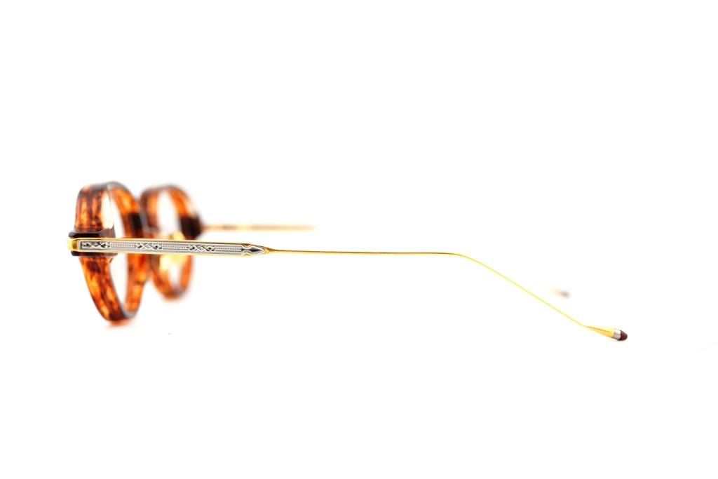 JMMのアイウェアコレクションは、最高峰の信頼と技術を誇る日本の工場にて、職人の手によって仕上げられます。随所に使用されるスーリングシルバーや18Kのジュエリーパーツが「大人の眼鏡」を演出します。