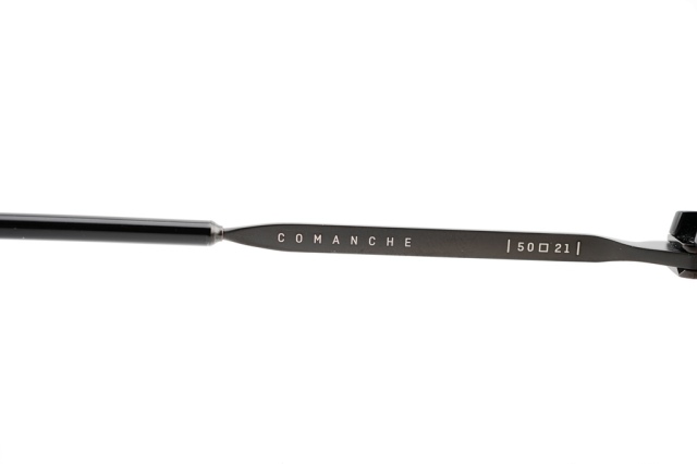 An homage to the sophistication and prowess of the Native American nation for which its named, these glasses daringly combine voluminous acetate and beta titanium with delicate tribal-inspired filigree and hand epoxy details to create an expression of bold refinement.